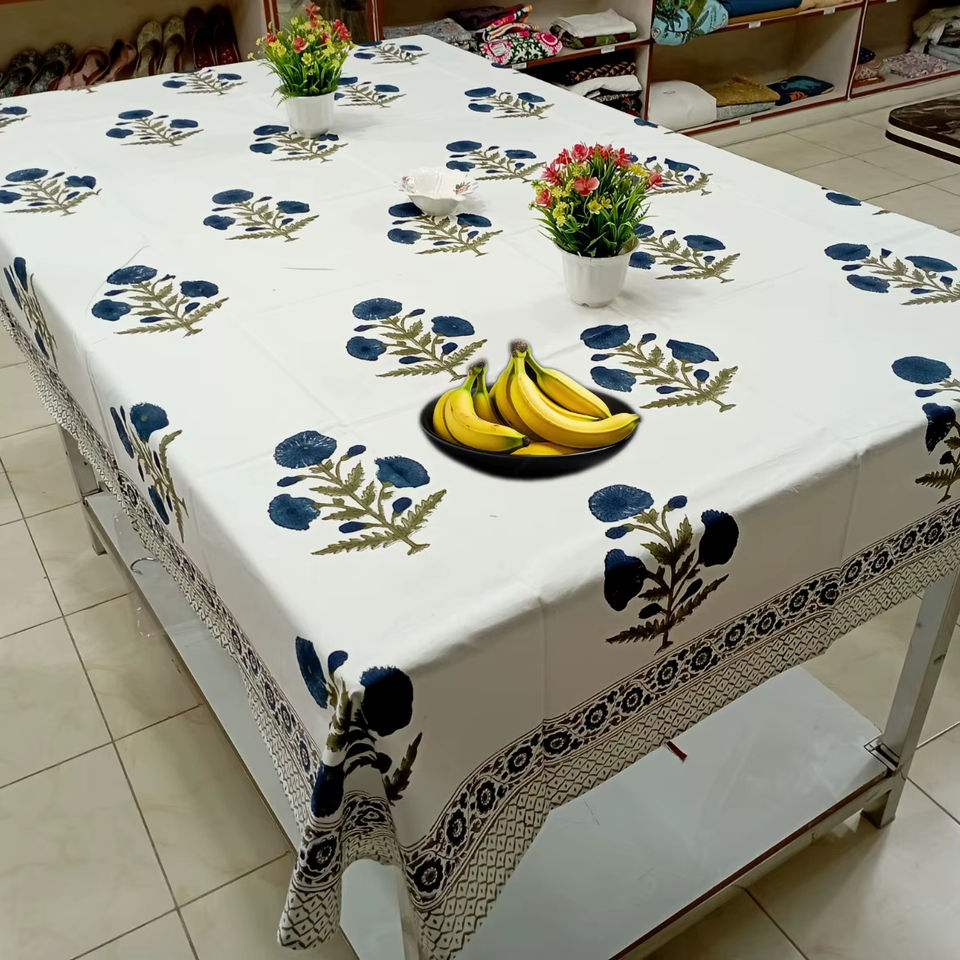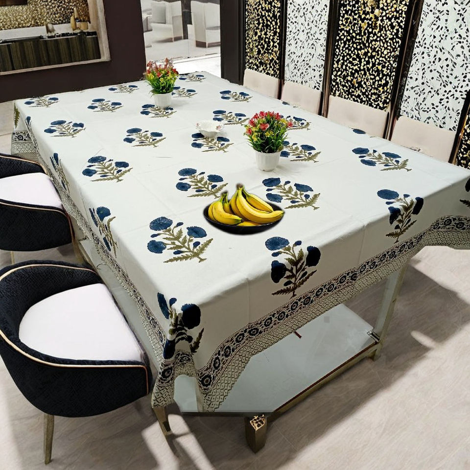 Nappe de table artisanale en coton pur blanc, imprimée au bloc, personnalisable, écologique, moderne, lavable, durable, à motif floral, style ferme