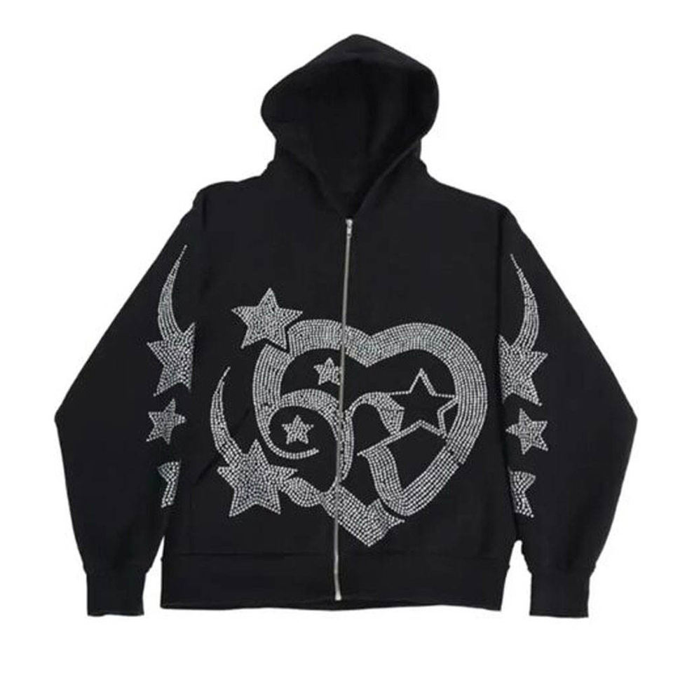 Sweat à capuche pour homme en mélange coton-polyester avec strass, empiècements contrastants et accent en cristal, cordon de serrage à la capuche