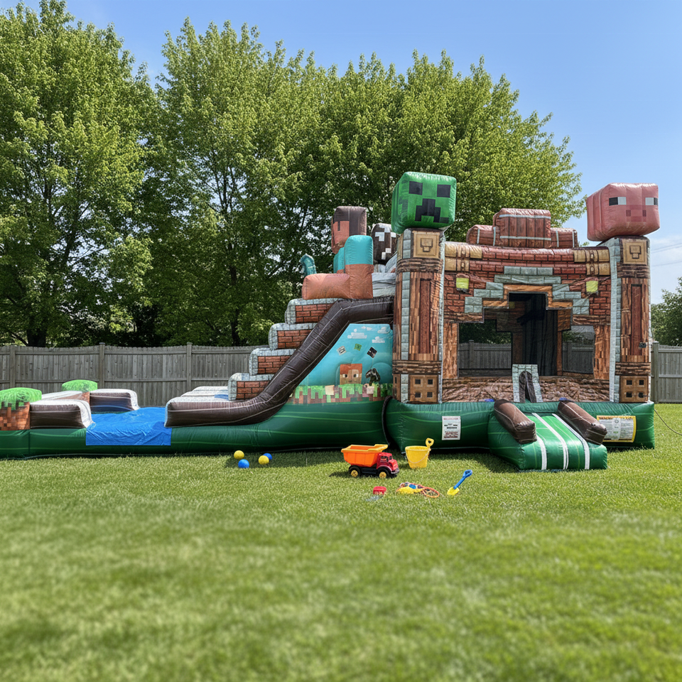 Château gonflable de style bloc avec toboggan, château de saut géant pour enfants, parcours d'obstacles gonflable géant pour fêtes et jardin