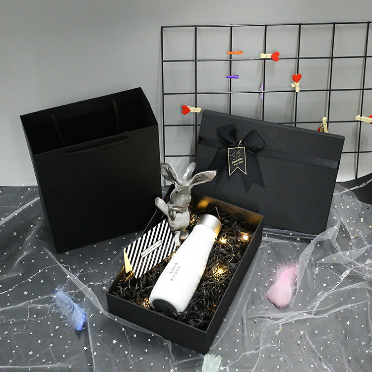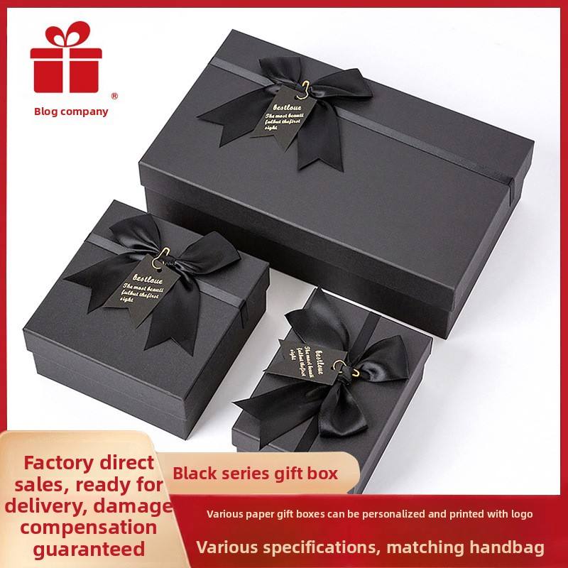 Boîte cadeau noire avec nœud de la marque Blog Division Tiandi, emballage créatif pour rouge à lèvres, grande boîte cadeau d'anniversaire vide