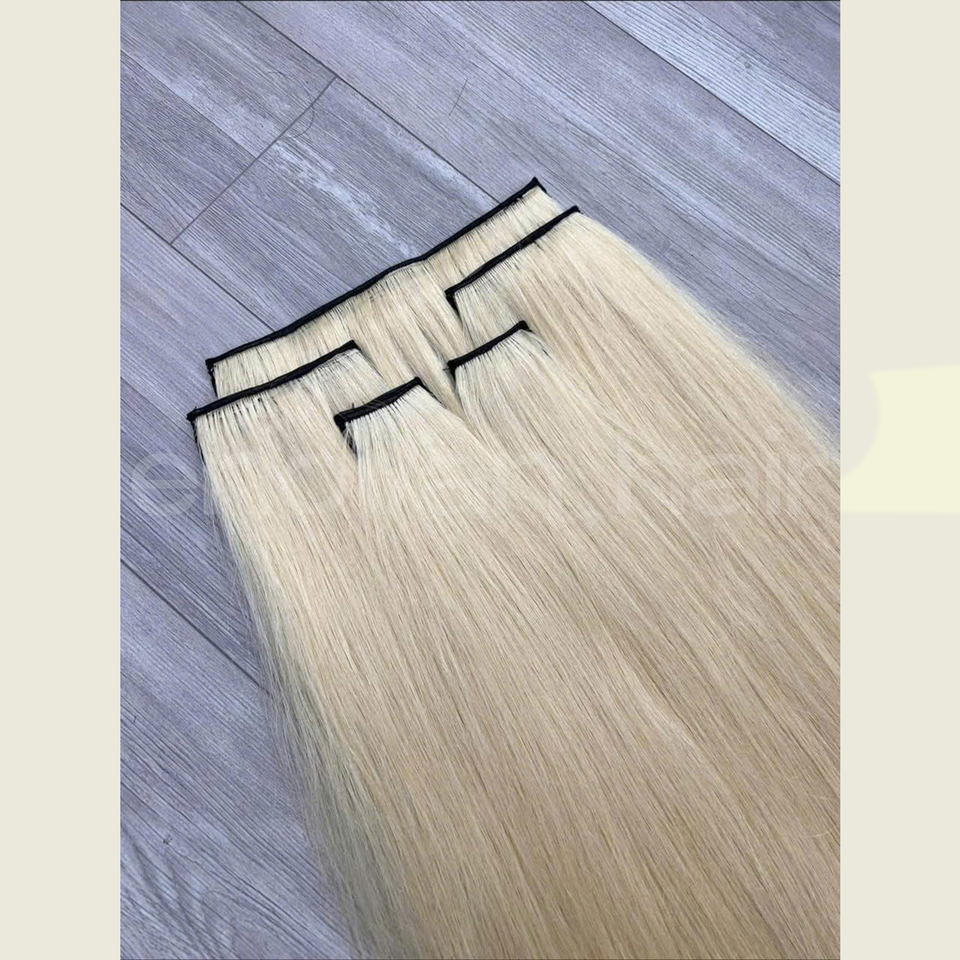 CLIP Blonde DANS Les Extensions De Cheveux Humains Vietnamiens Traitement Russe Technique Slave Premium Vierge Texture Douce Usine