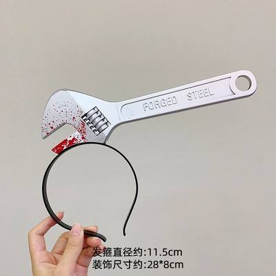 Serre-tête d'Halloween effrayant avec couteau de cuisine en plastique simulé et boucle, accessoires de cosplay, aiguille et barillet, unisexe adulte pour fêtes de carnaval