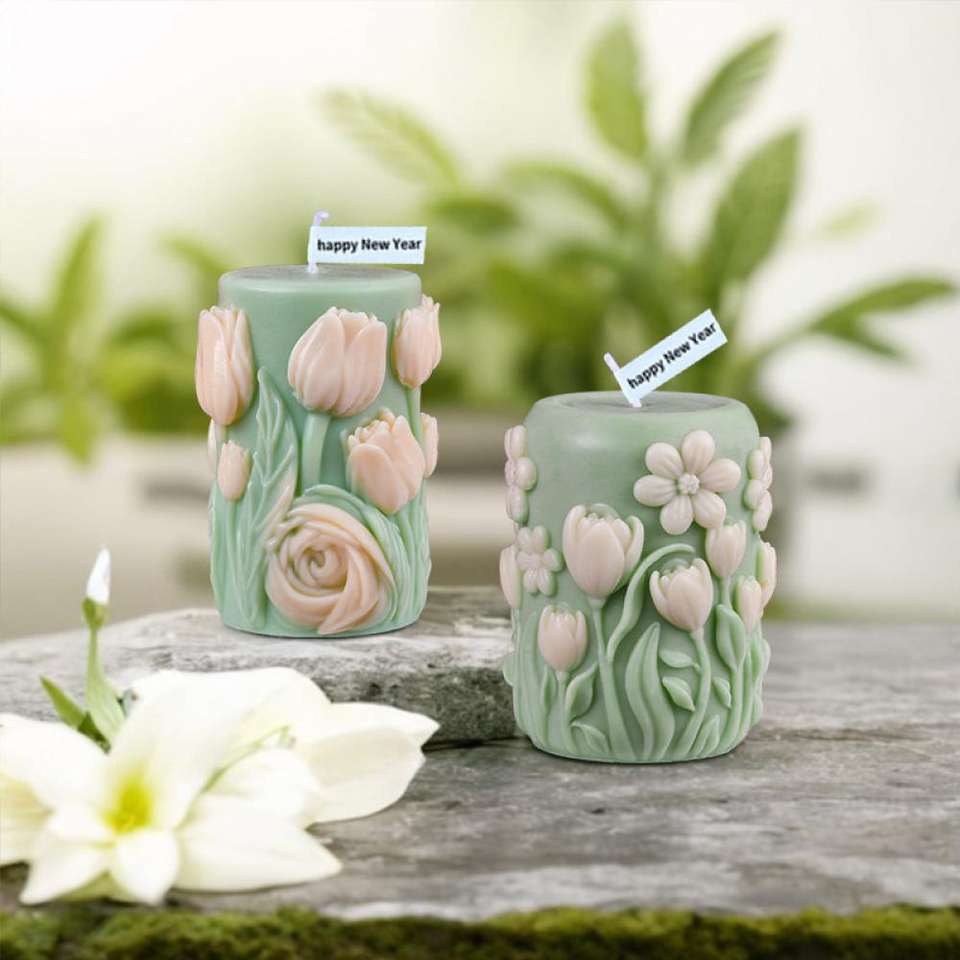 Moule en silicone pour bougie en pierre parfumée, colonne de fleurs en épanouissement, rose, cérémonie de mariage, aromathérapie