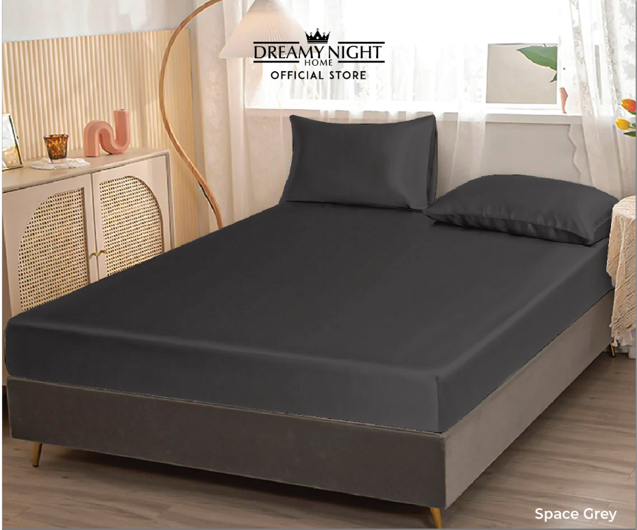 Ensemble de drap-housse double en satin de coton 100% de haute qualité-Crème