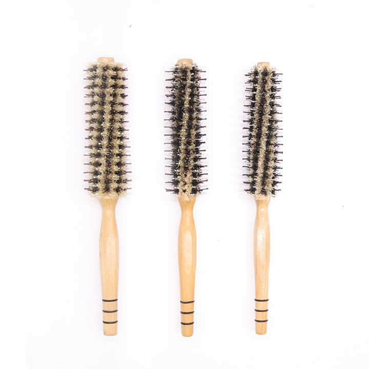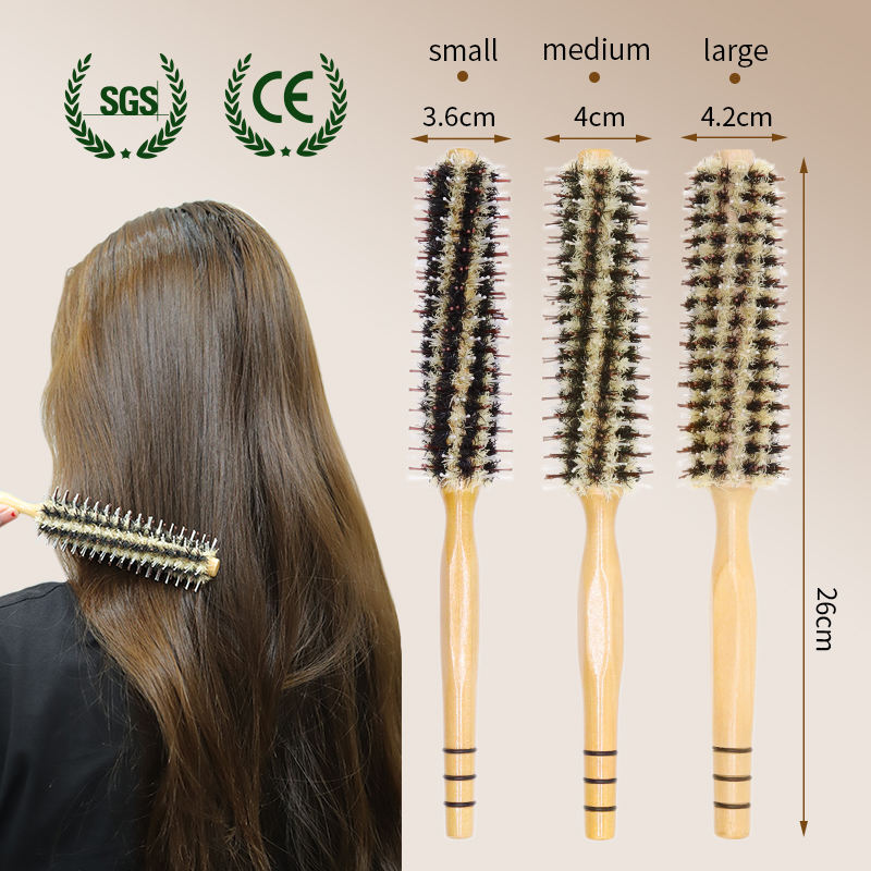 Brosse à cheveux ronde en bois à poils de sanglier haute densité pour le brushing, le lissage et le coiffage professionnel