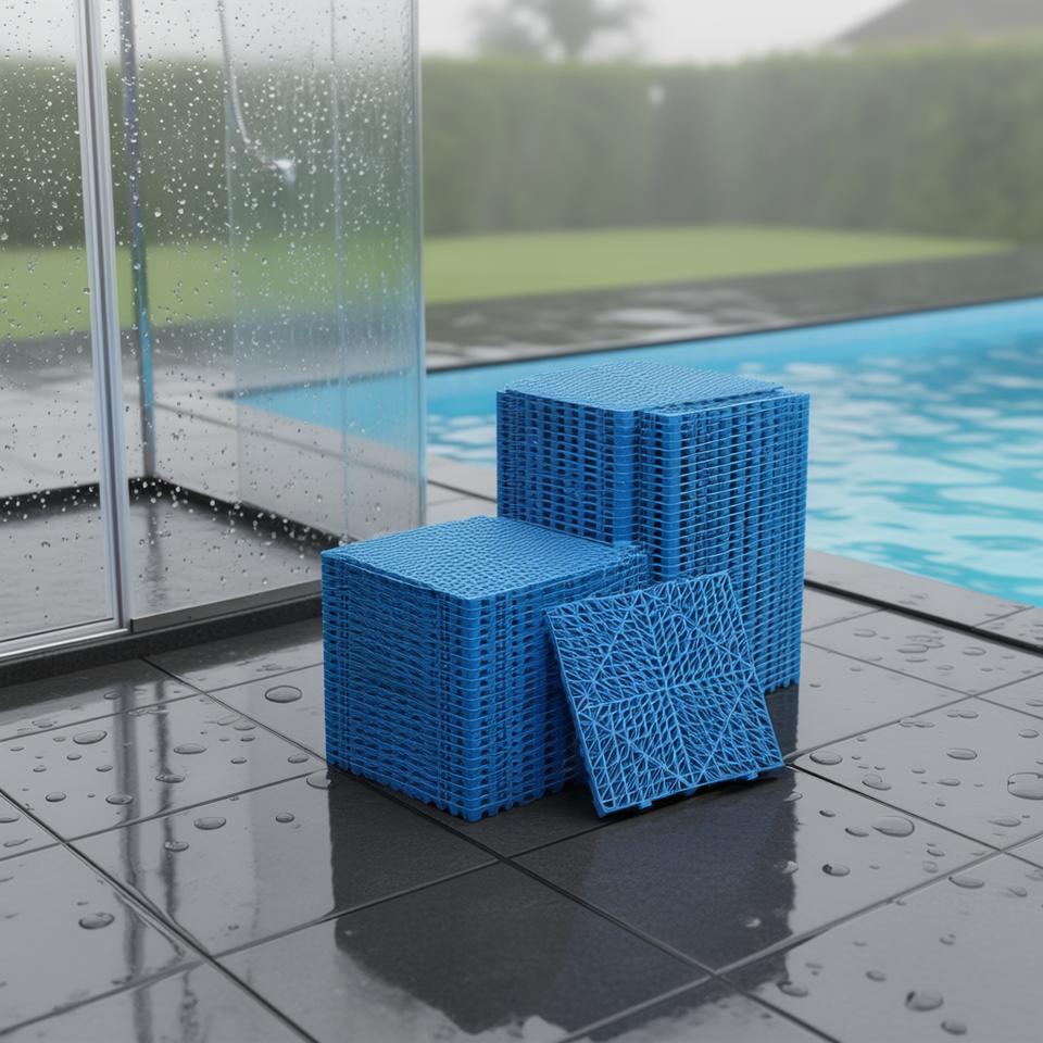 Dalles de sol en PVC emboîtables bleues 12 po x 12 po, 50 pièces, antidérapantes, pour piscine, toilettes et zones humides