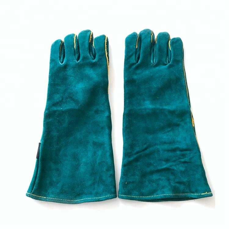Bleu 14 pouces 16 'protection argon peau de vache vache cuir fendu soudage gants de sécurité résistants à la chaleur