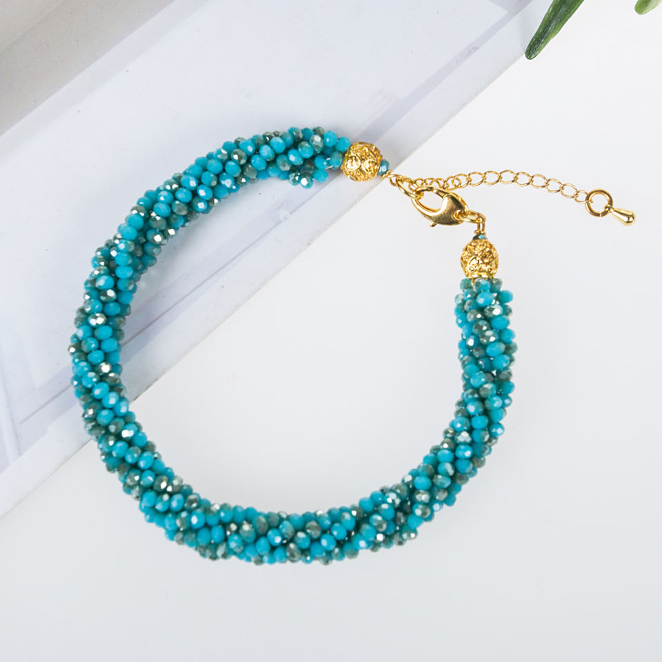 Bracelet en cristal de verre naturel torsadé à 4 rangs bleu, élégants bracelets en cristal