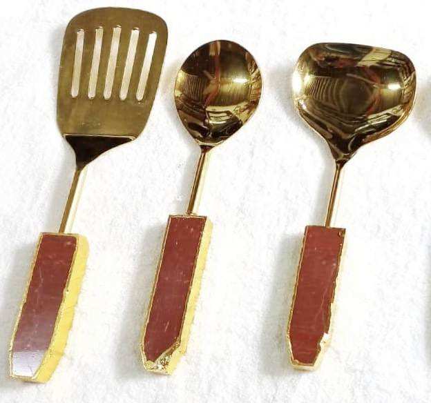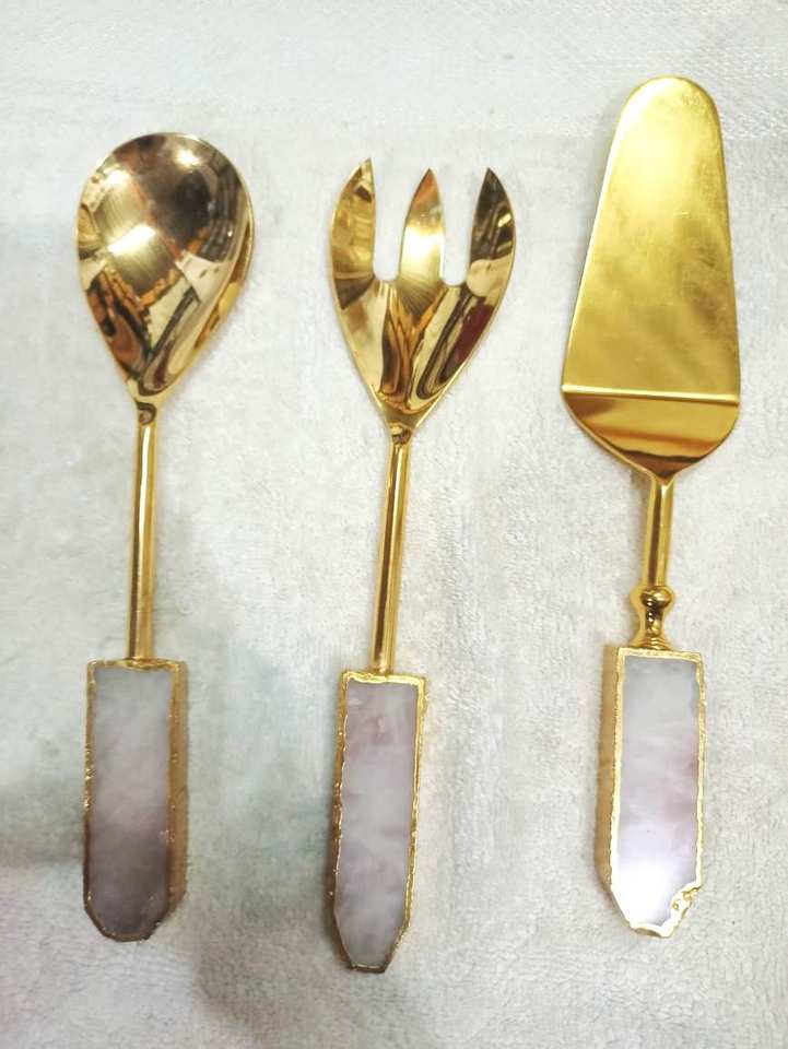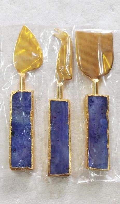 Ensemble de 3 cuillères de service artisanales en pierre d'agate bleue, l'union de la beauté naturelle et du luxe moderne