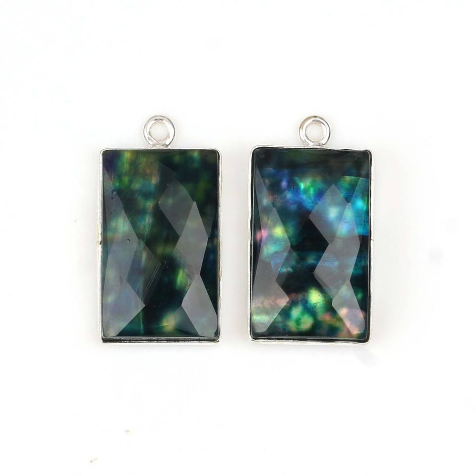 Product Name:Ammolite Hydro Quartz Rectangle Shape Sterling Silver Bezel Pendant