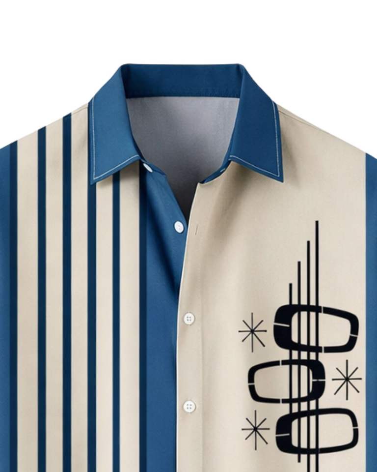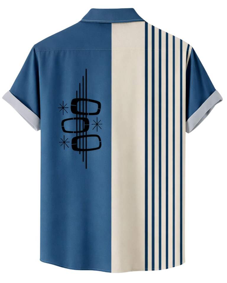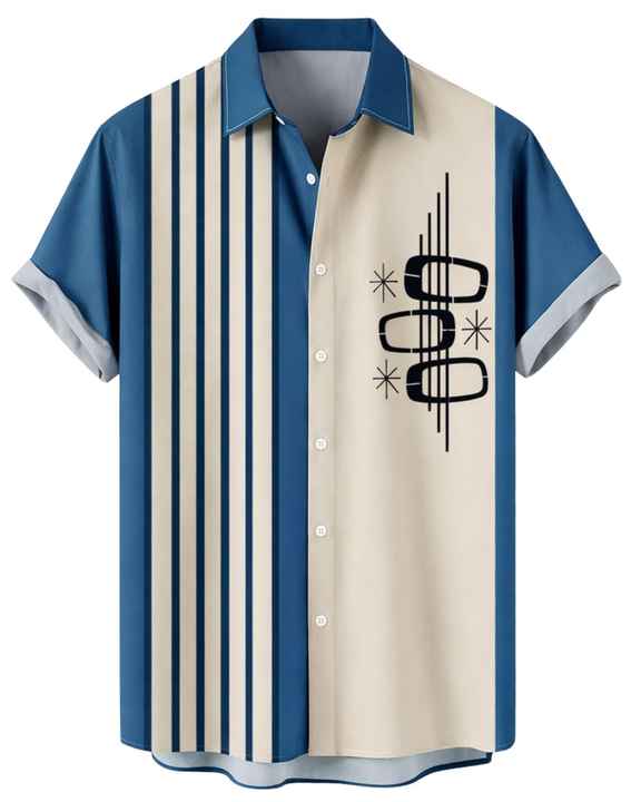 Chemise à manches courtes boutonnée à rayures verticales bleues et beiges, imprimé géométrique, décontractée, été, homme, fabricant OEM, sur mesure, en gros