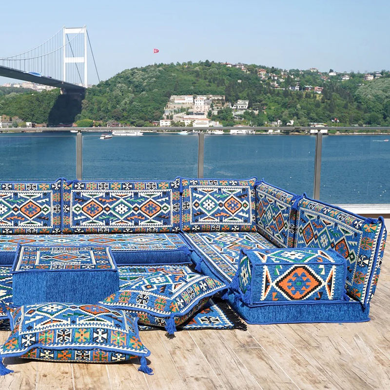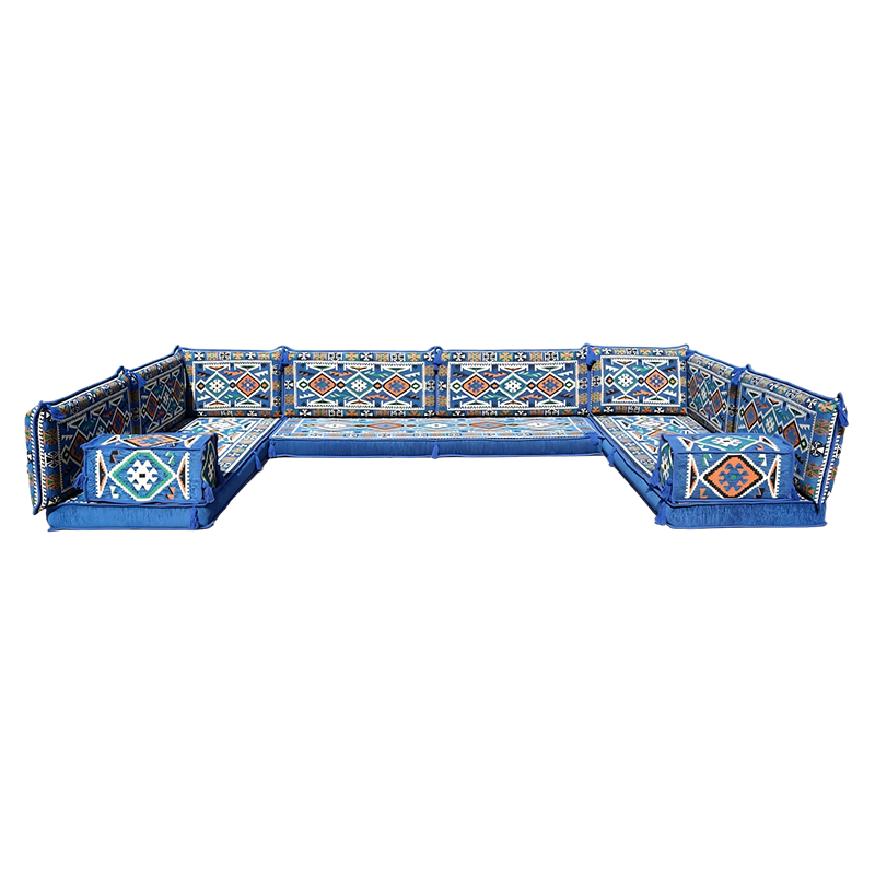 Ensemble Canapé Modulable en Tissu Bleu Majlis Arabe en U, Style Marocain, pour Salon, Hôtels et Centres Commerciaux
