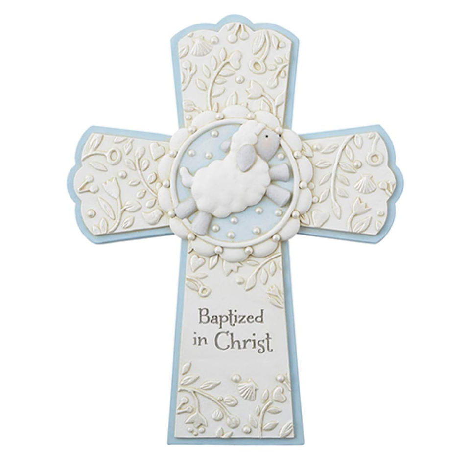 Bleu Baptisé Résine Christ Croix Religieux Souvenirs Pour Bébé