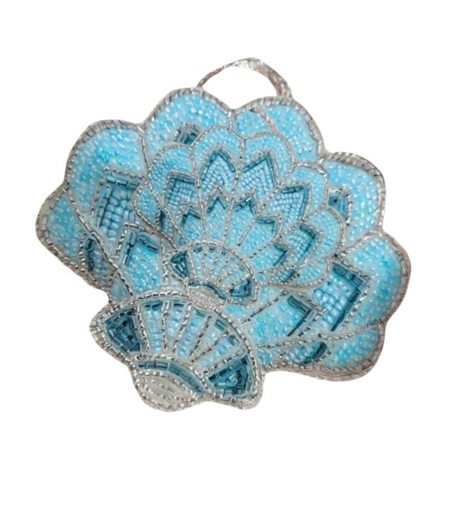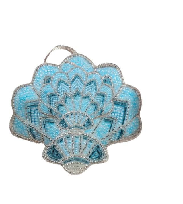 Ornement suspendu Zari perlé bleu – Motif éventail brodé à la main, décoration indienne artisanale pour l'Aïd et les fêtes | Patch fait main