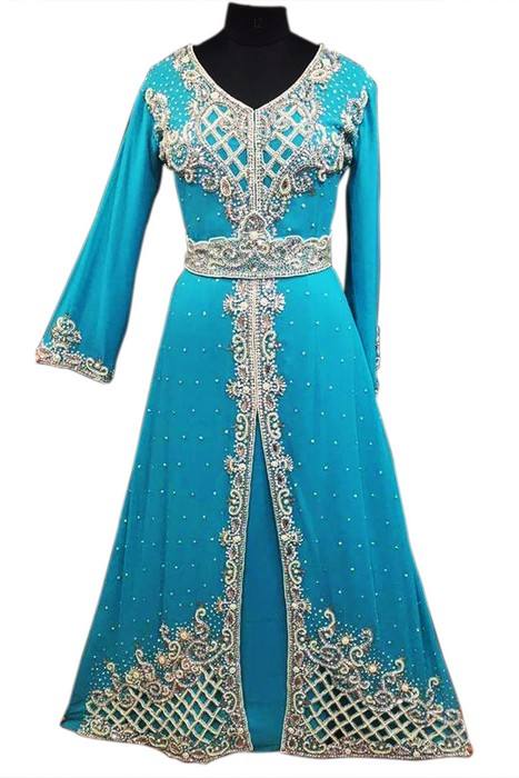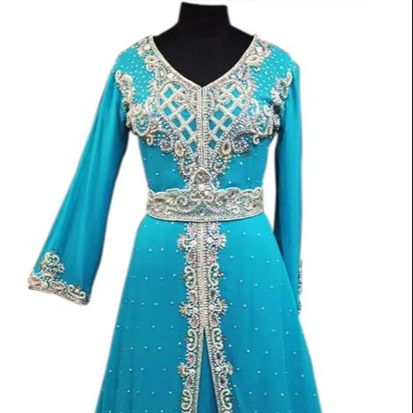 Perles bleues et travail de la pierre Georgette cousue à la main ODM Caftan Style arabe marocain Caractéristique respirante