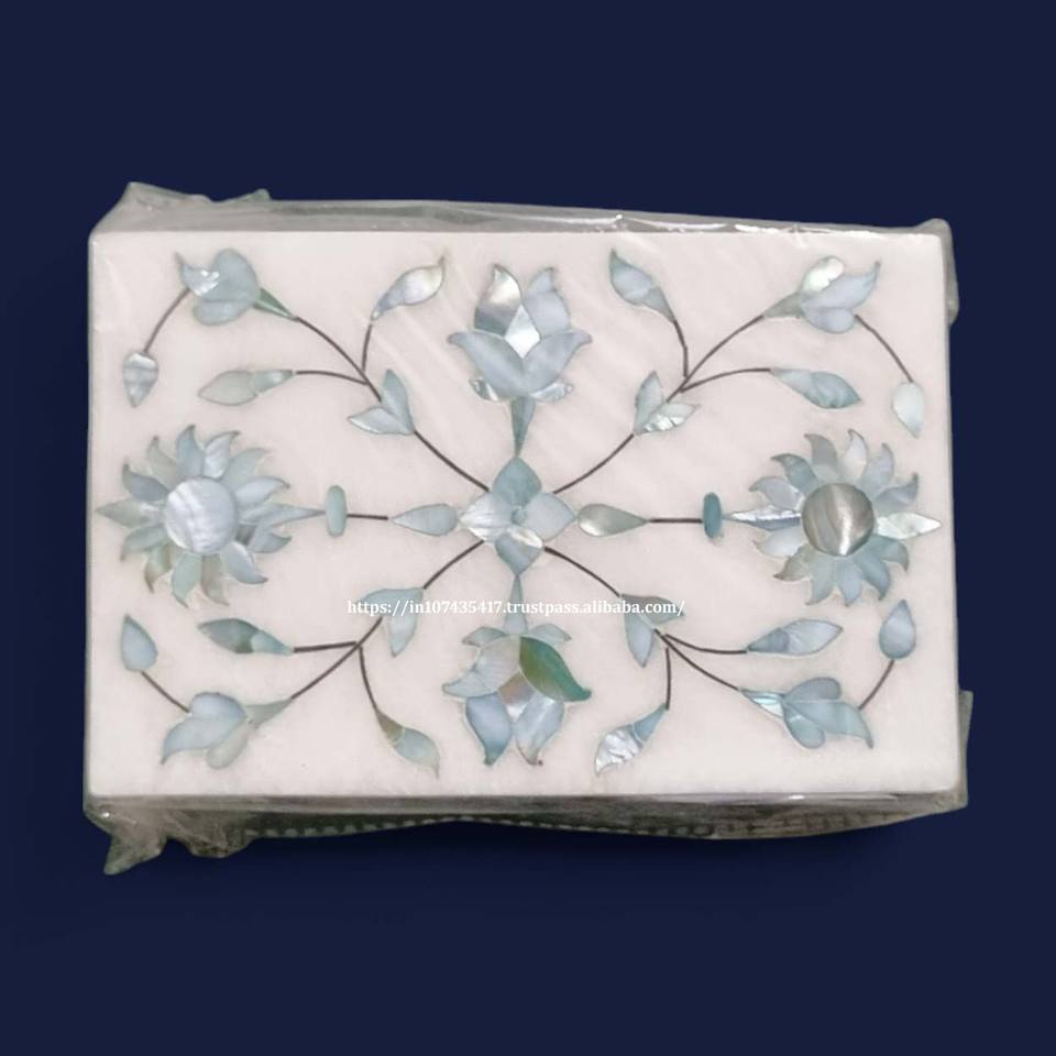 Blue Best Design MOP Premium Boîte d'incrustation de marbre moderne décorative attrayante avec utilisation de matériel de nacre pour le stockage de bijoux