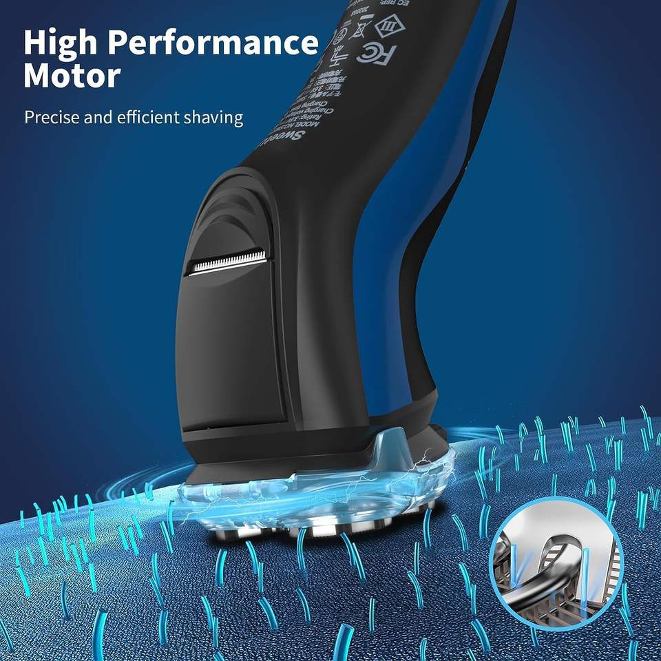 Rasoir électrique rechargeable bleu-noir pour hommes, étanche IPX7, rasage humide/sec du visage avec tondeuse escamotable pour utilisation en camping-car