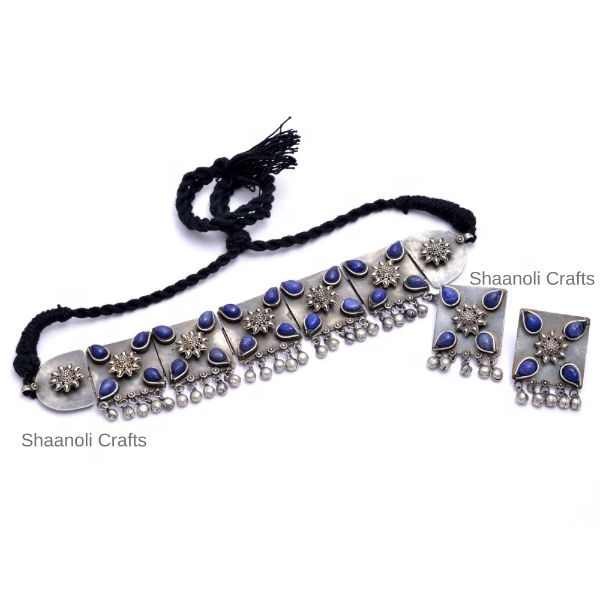 Product Name:Blue Gemstone Statement Necklace