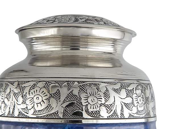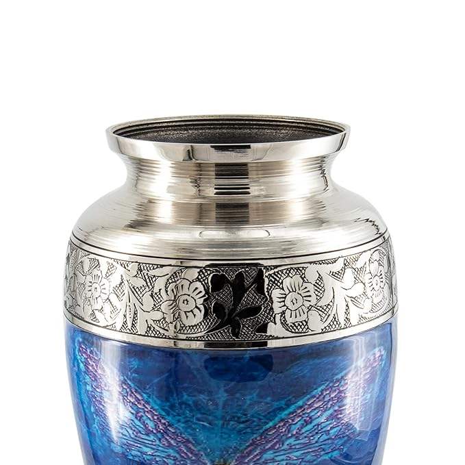 Urne funéraire moderne pour adultes, design papillon bleu, en métal fait main, étanche, capacité 4-5L, forme ovale, fabriquée en Inde
