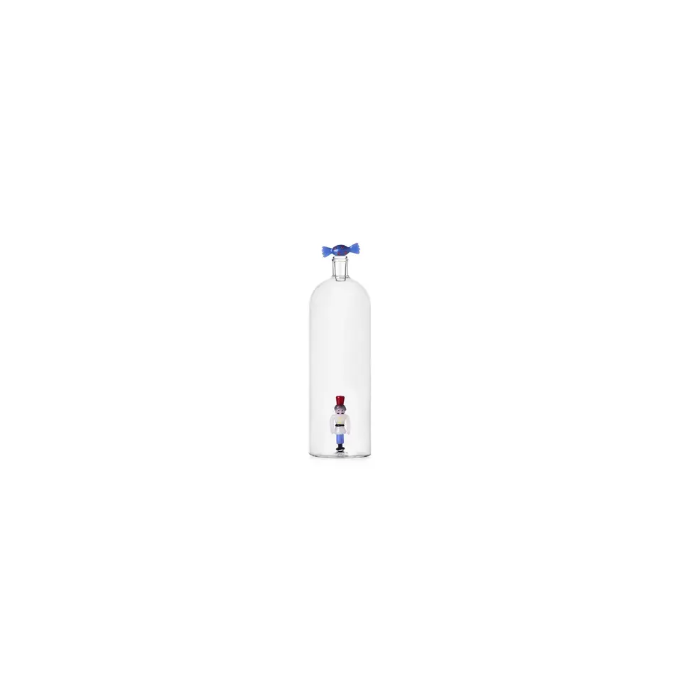 Bouteille de bonbons bleue avec décor en verre artisanal Soldat Casse-Noisette