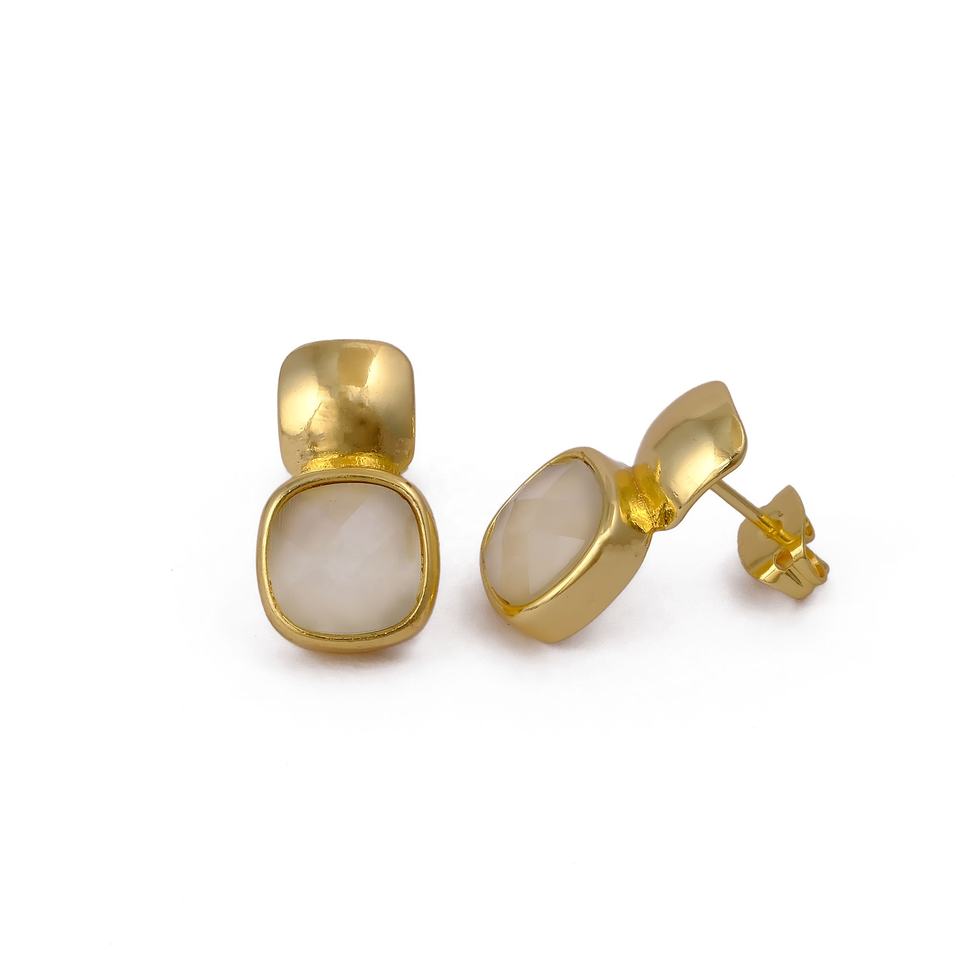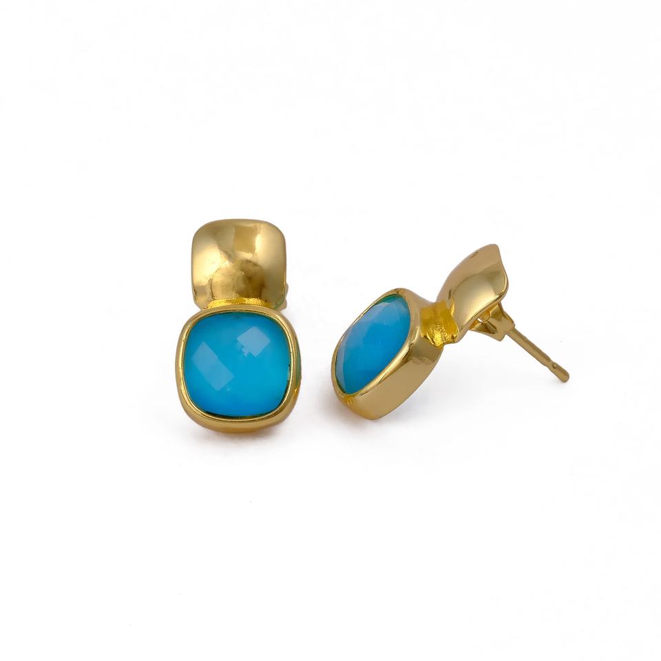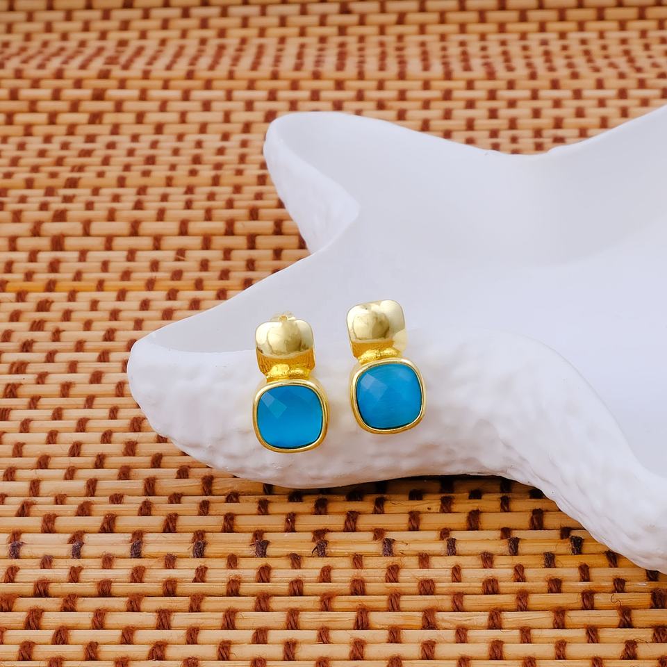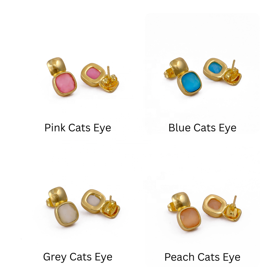 Boucles d'oreilles clous en alliage plaqué or tendance, forme coussin facetté œil de chat bleu, anti-ternissement, élégantes et minimalistes, cadeau