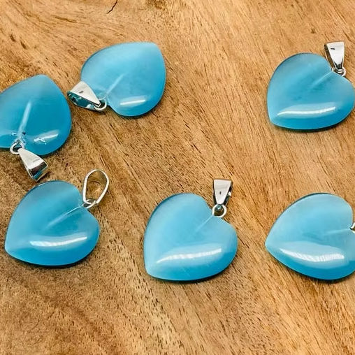Keyword:Blue Cats eye Heart Pendant 925 Silver