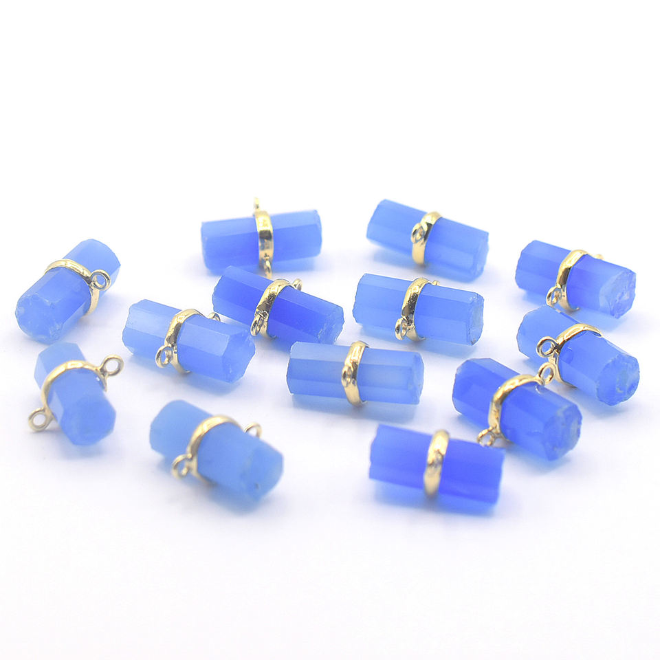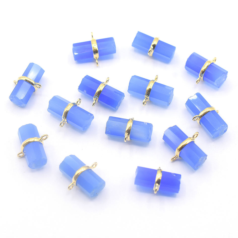 Product Name:Blue Chalcedony Pencil Shape Silver Bezel Gold Plated Connector