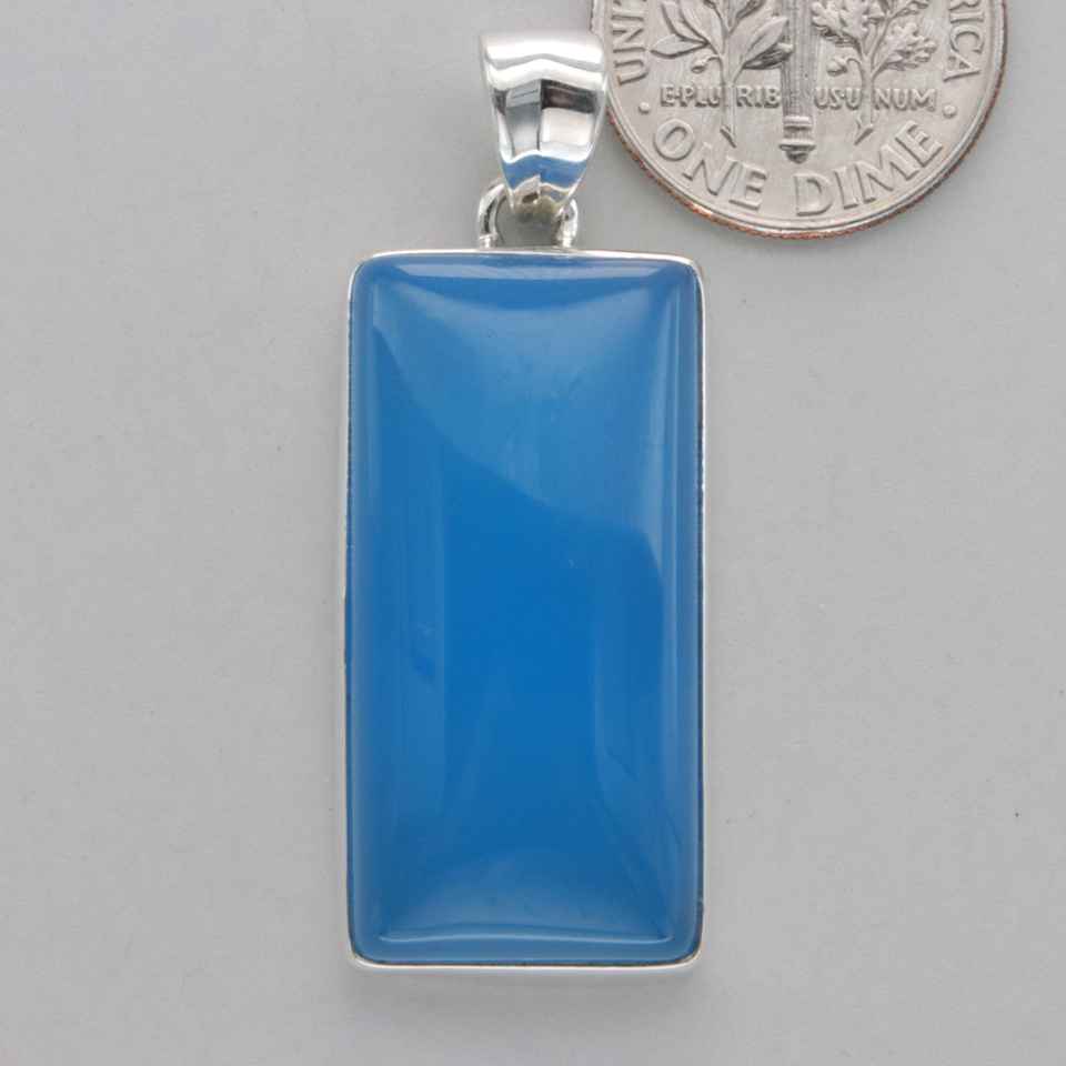 Blue Chalcedony Square Rectangle Pendant in 925 Sterling Silver Charm Genuine and Natural Gemstone Pendant for Womens Wear