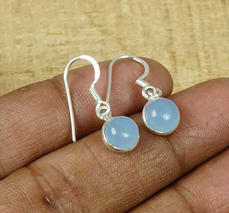 Keyword:Blue Chalcedony Stud Earrings With Sparkling Dangle Gemstone Jewelry