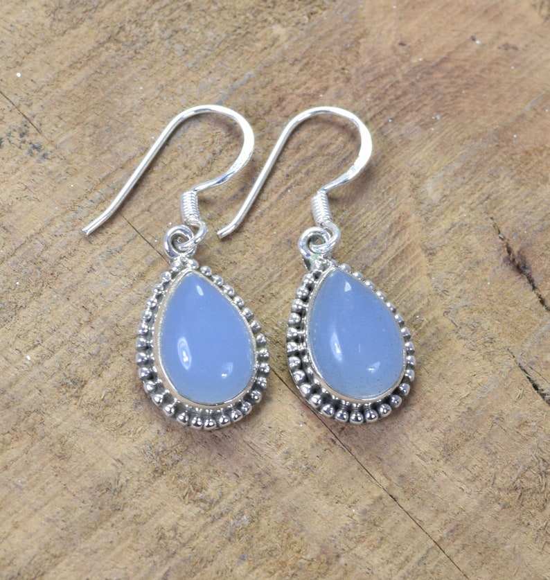 Keyword:Blue Chalcedony Stud Earrings With Sparkling Dangle Gemstone Jewelry