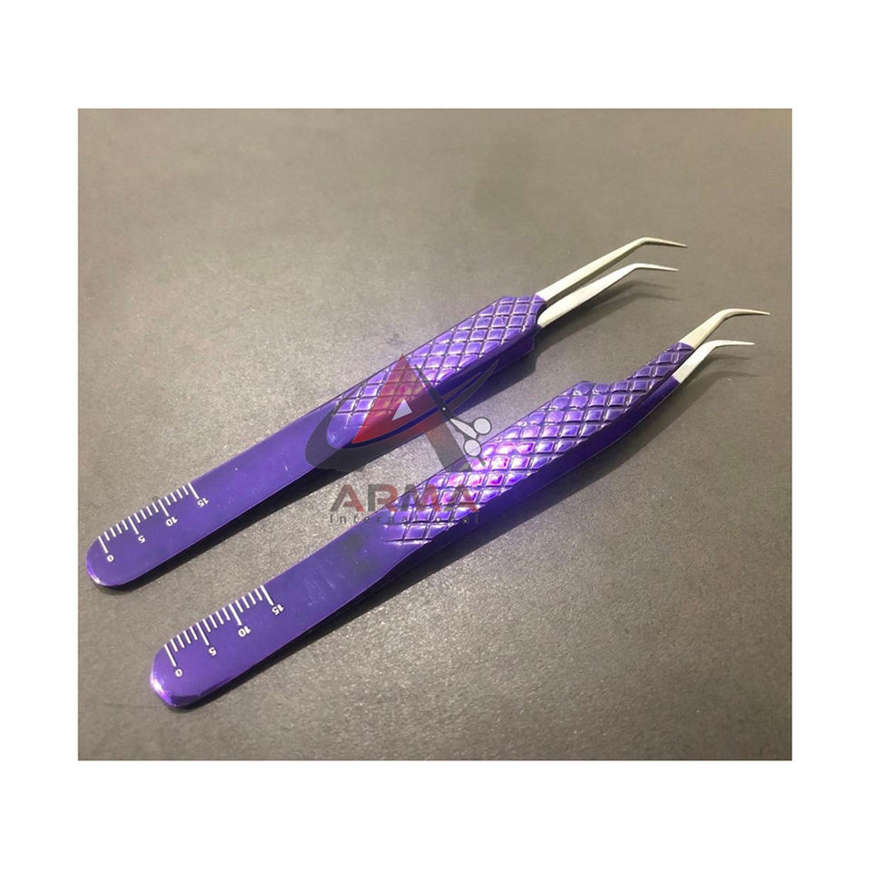 Pince à épiler d'extension de cils enduite bleue pince à cils en acier inoxydable sous marque privée