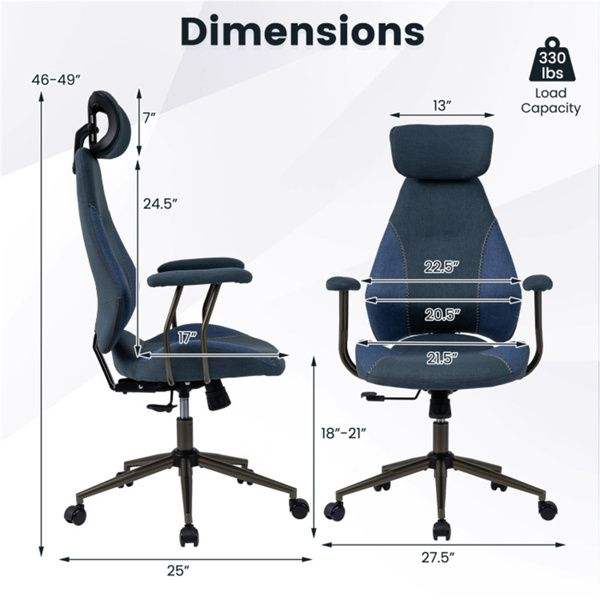 Chaise de bureau ergonomique à dossier haut de couleur bleue avec blocage de couleur, appui-tête réglable 2D, chaise de gaming pour usage professionnel, capacité de 330 lb