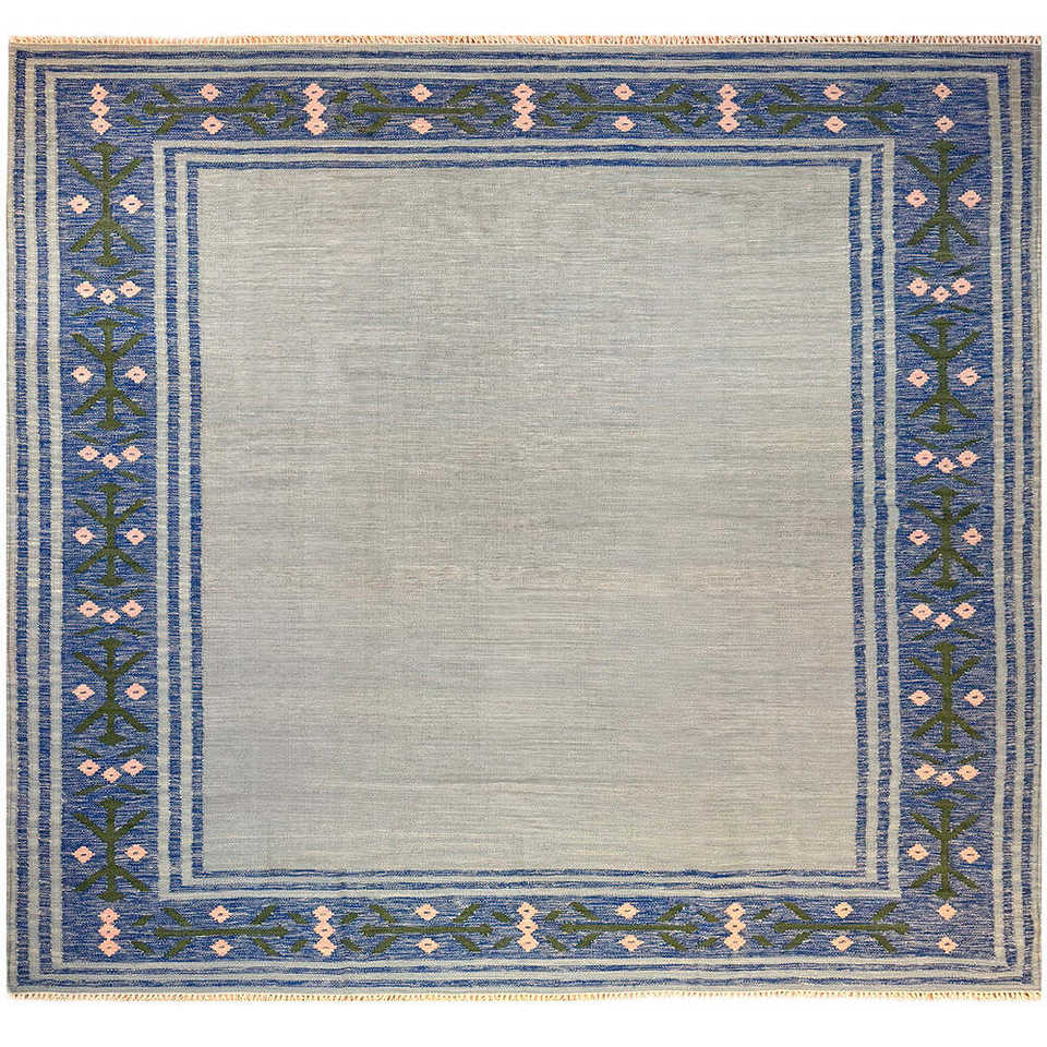 Dhurries de travail de bordure de couleur bleue avec des tapis de concepteur de motif de fleur