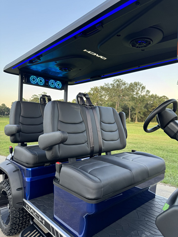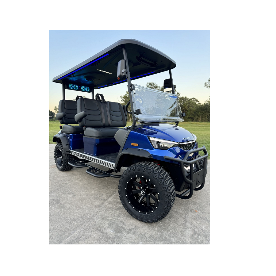 Voiturette de golf bleue à vendre, électrique, 72V, 4 places, sièges orientés vers l'avant