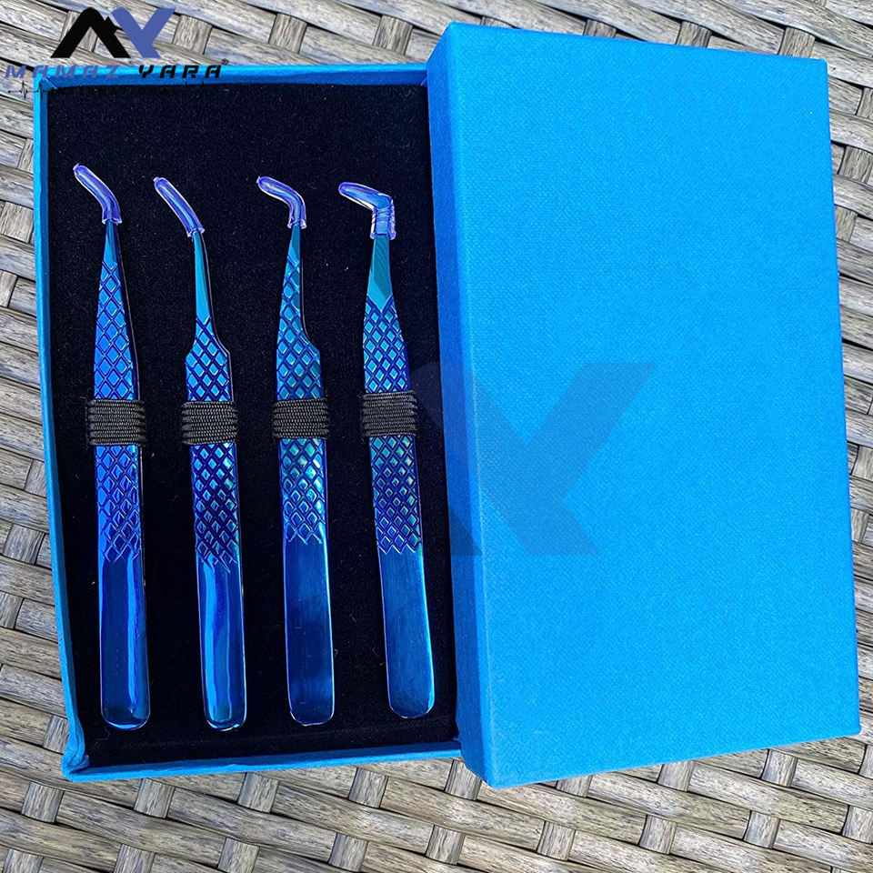 Pince à épiler d'extension de cils à poignée solide de couleur bleue 4 pièces