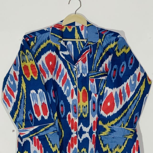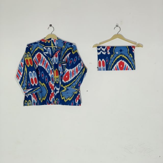 Ensemble de pyjama en coton bleu toutes tailles, imprimé floral à la main, vêtements de nuit disponibles en gros
