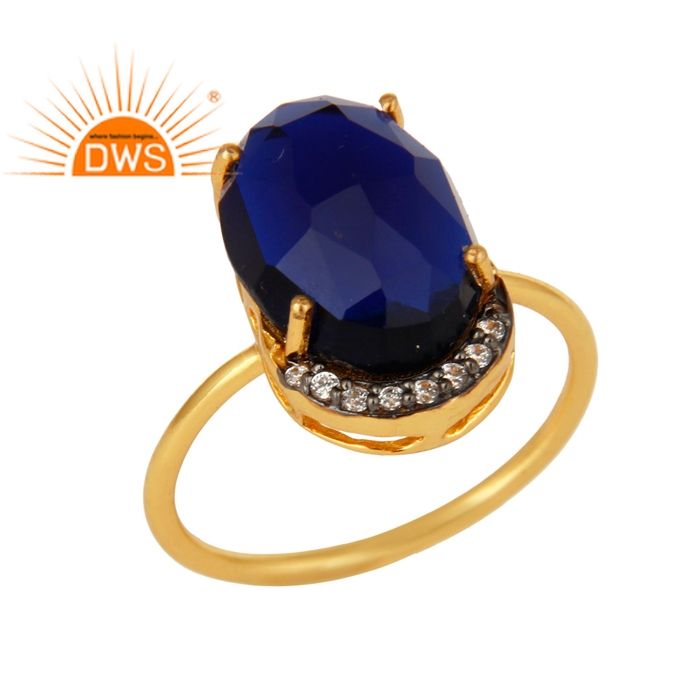 Corindon bleu Pierre Gemme Serti de griffes Bague Bijoux 14k Plaqué Or 925 Argent Anneau De Déclaration Bijoux Grossiste