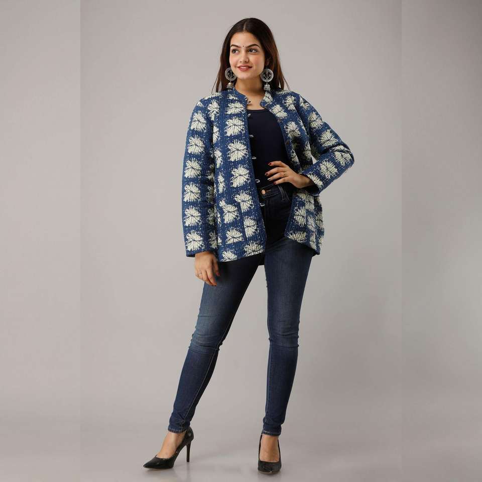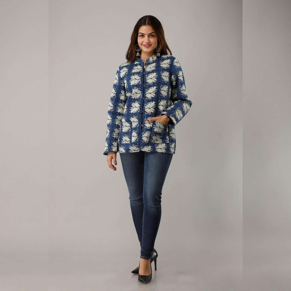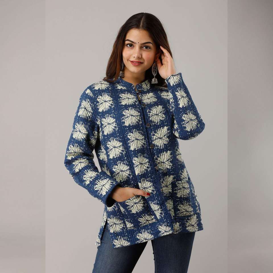 Veste matelassée en coton bleu pour dames réversible Animal léger Varsity Bomber court Blazer peau de mouton manteaux d'hiver
