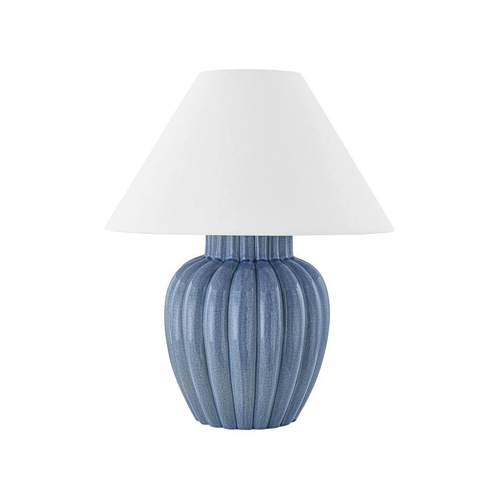 Lampe de table traditionnelle en céramique côtelée avec glaçure bleue craquelée | Éclairage classique intemporel pour les espaces de divertissement et les salons d'hôtel