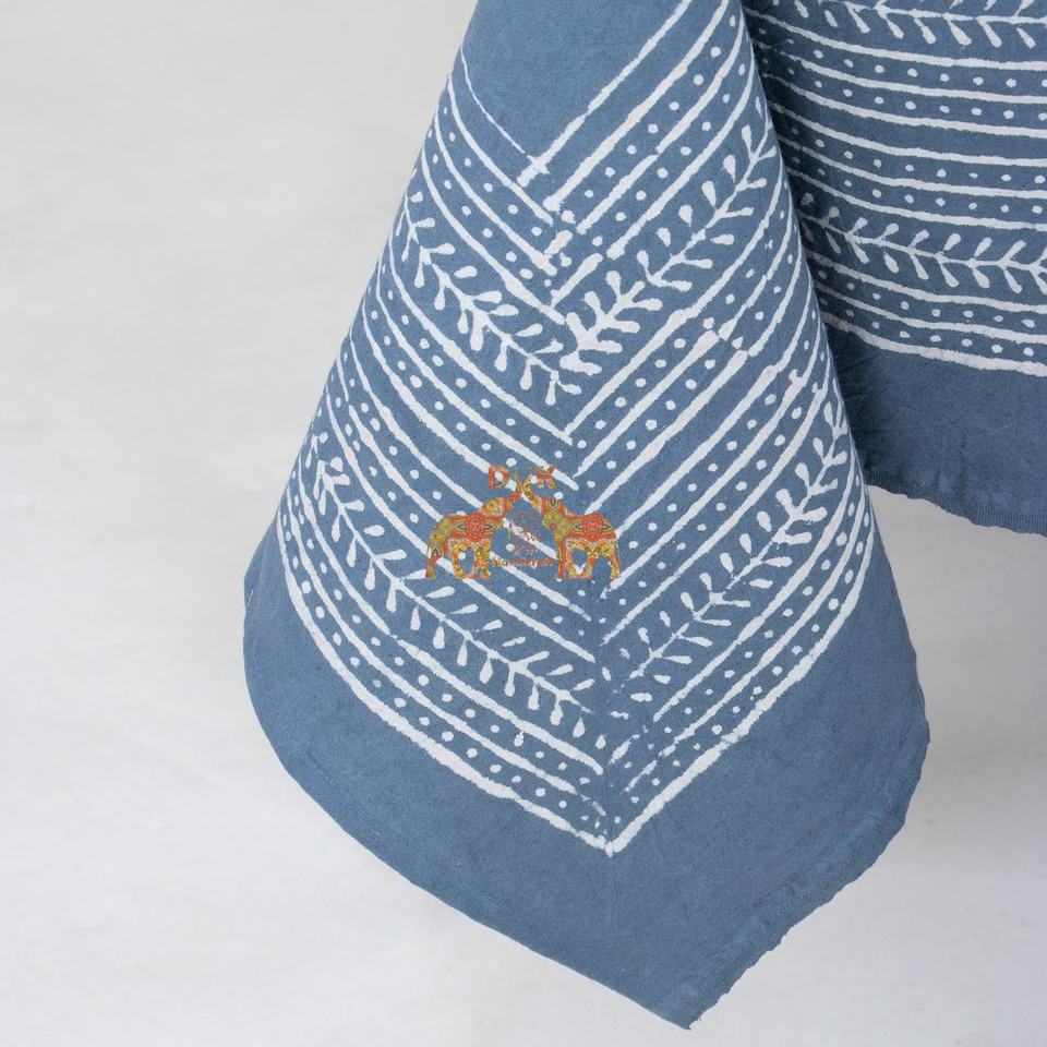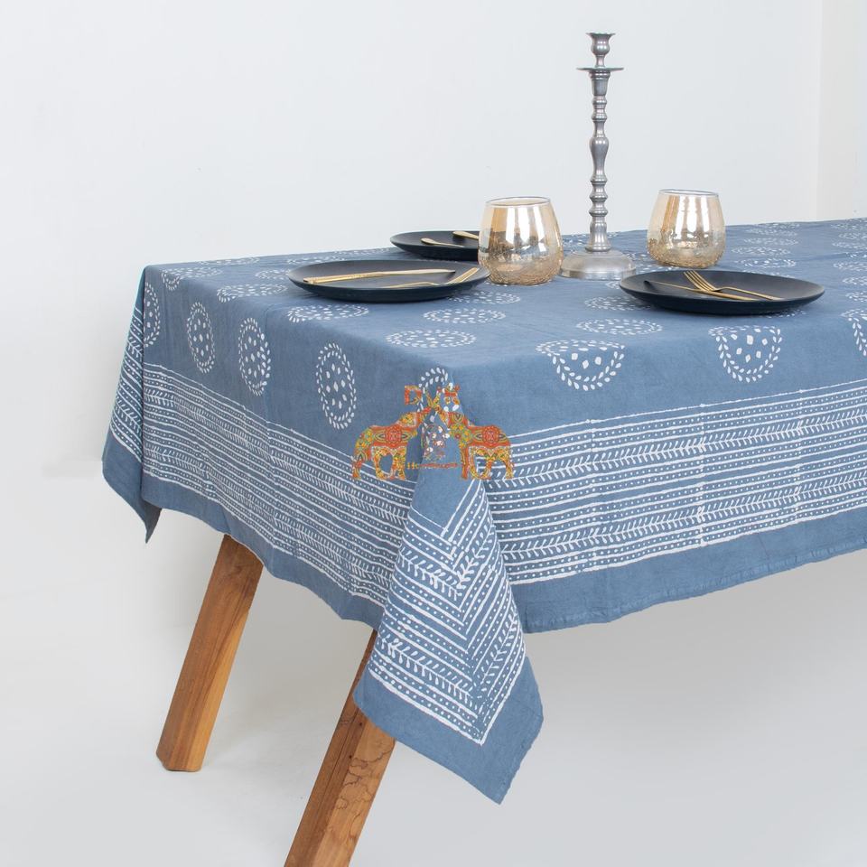 Nappe rectangulaire en pur coton imprimée à la main avec motif floral Dabu bleu, style ferme indienne, pour mariage, couvre-table rond