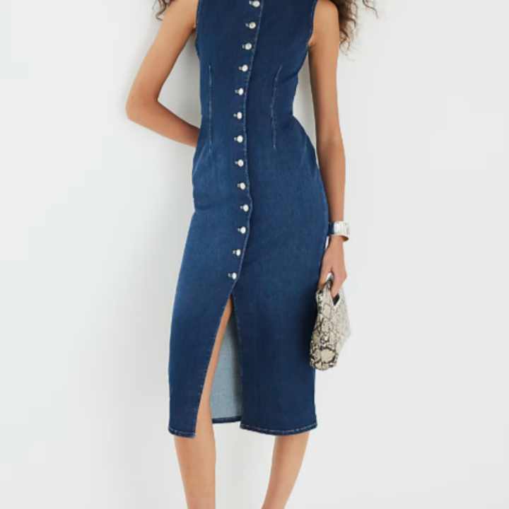 Robe longue en jean bleu boutonnée devant, style bohème décontracté, taille élastique, lavable, patchwork uni, coupe trapèze, printemps été automne