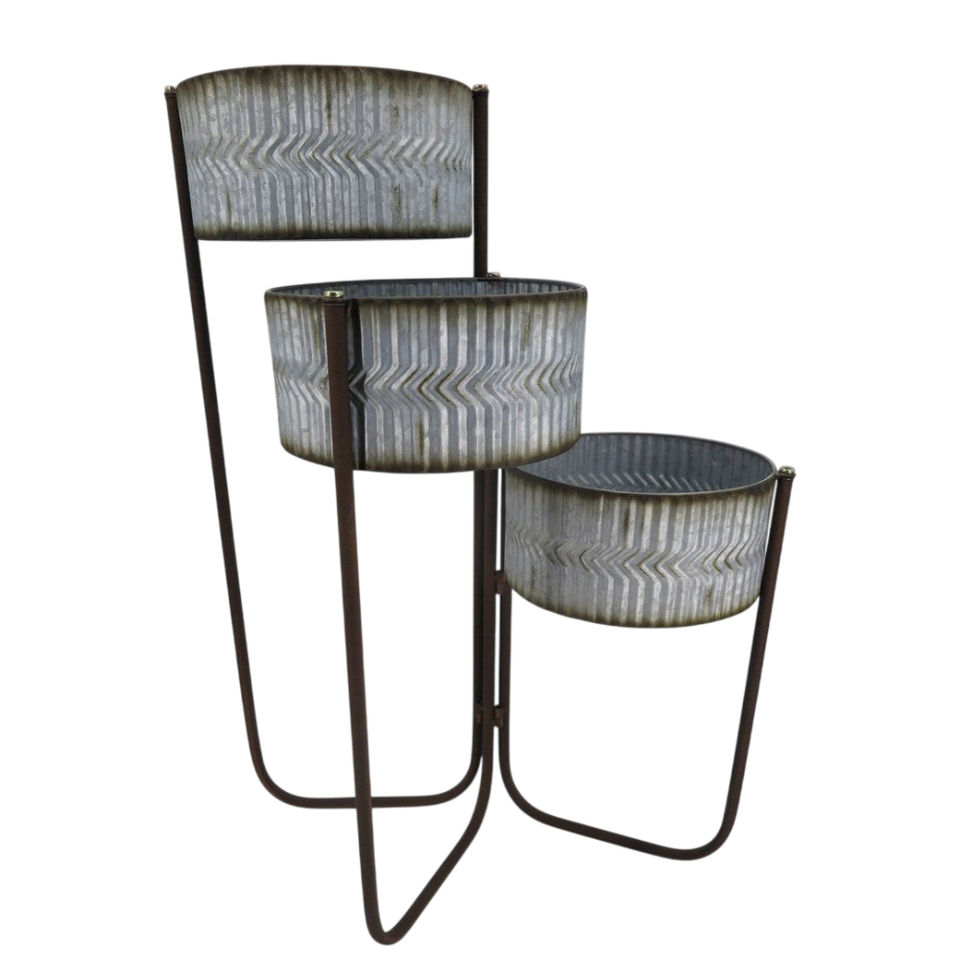 Pot de fleurs sur pied en métal bleu vieilli, moderne, décoratif, pour intérieur et extérieur, géométrique, avec support métallique, pour la décoration de la pièce et du jardin