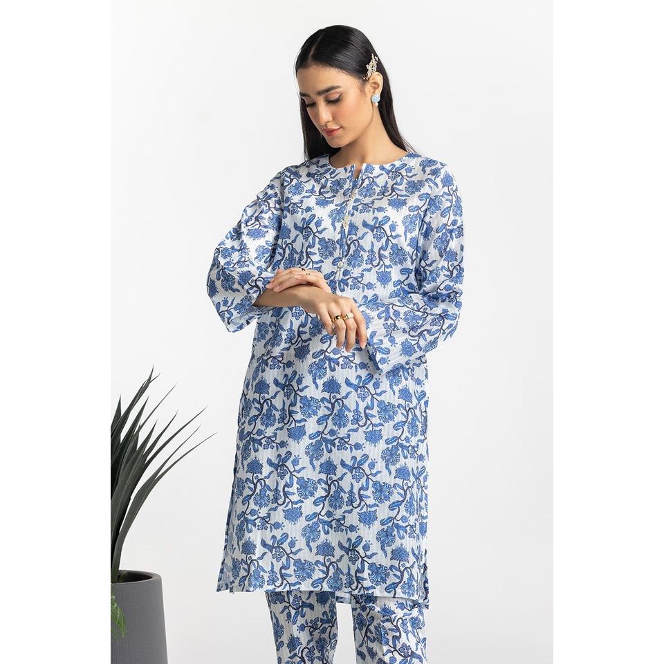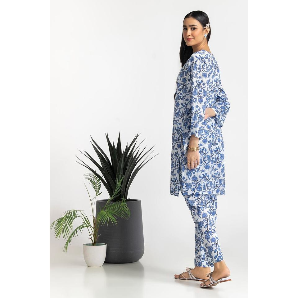 Ensemble coordonné imprimé Dobby bleu pour femme, tenue de tous les jours, tissu crêpe, ensemble short deux pièces, longueur au-dessus du genou, tailles XS et XXS