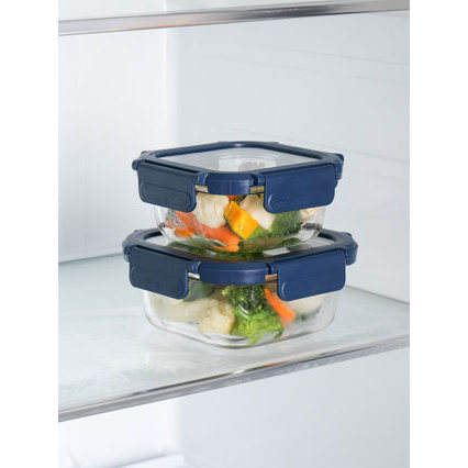 Verre résistant à la chaleur Blue Edge 300ml Stockage des aliments carrés et stockage au froid