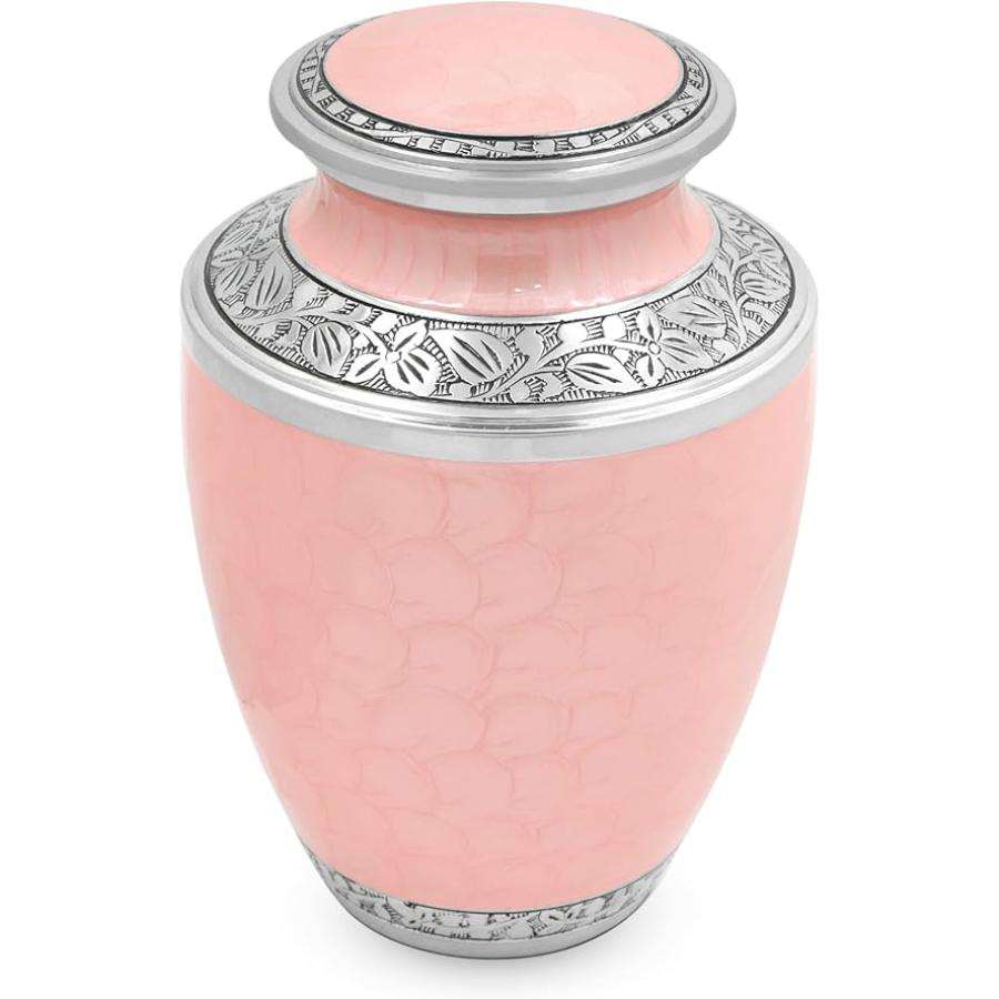 Nom du produit:Urne funéraire adulte en laiton Milano rouge et or avec bande florale gravée à la main