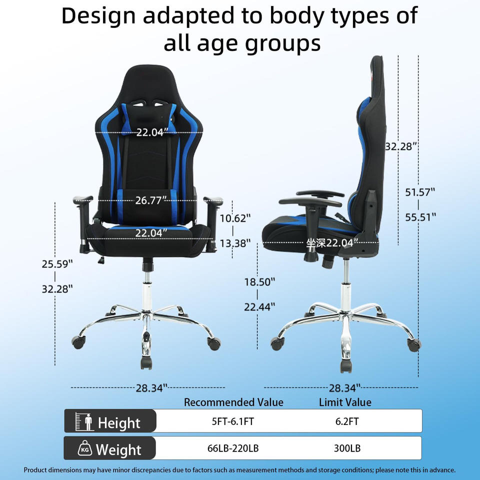Chaise de jeu inclinable avec barre lumineuse LED RGB au design moderne, en cuir PU, échantillon gratuit pour les joueurs, vente en gros en usine bleue