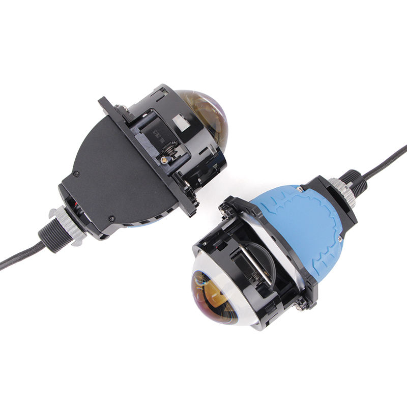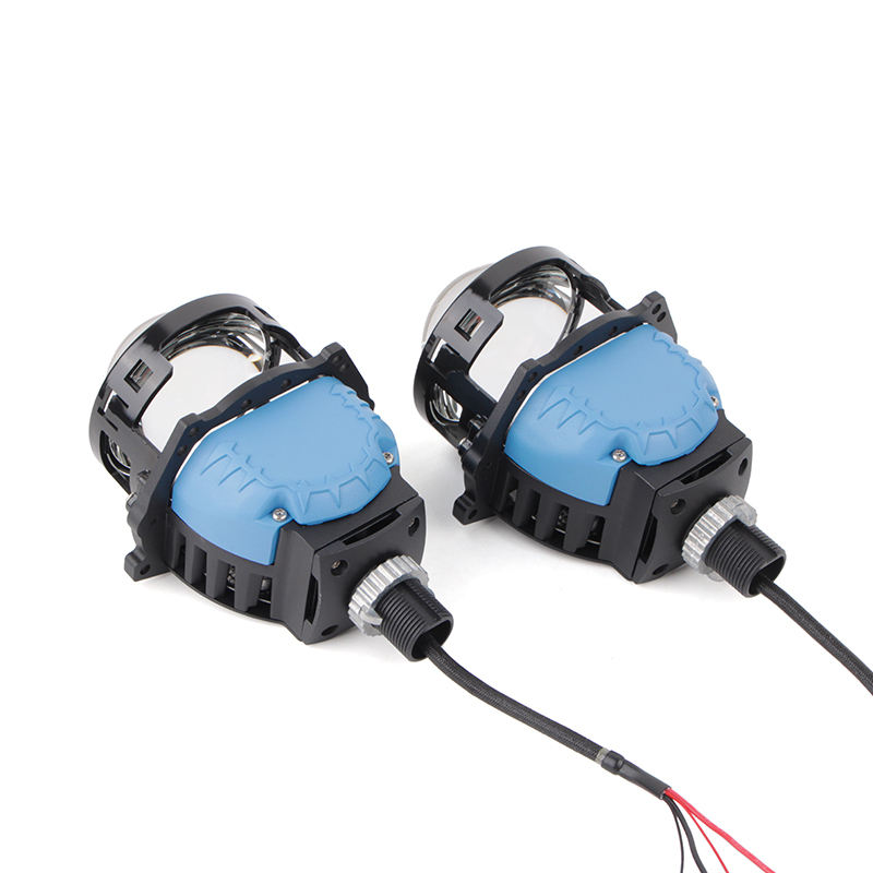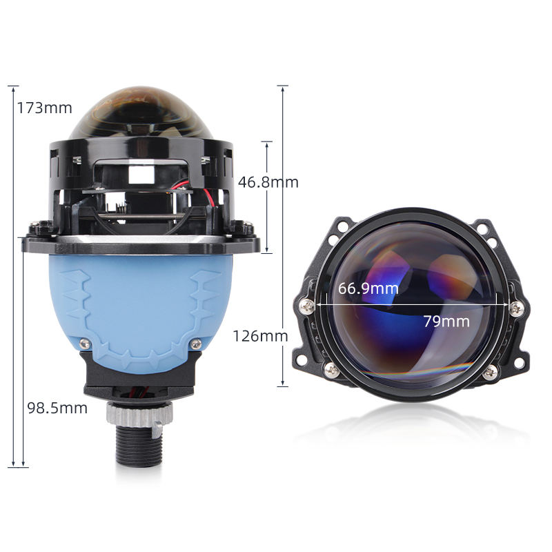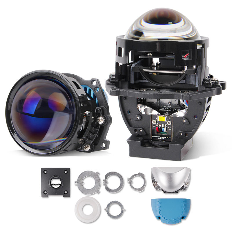 Lentilles de projecteur Bi-LED 3 pouces pour phares H4 H7 9005, avec 3 lentilles réfléchissantes en film bleu, lumière blanche, mise à niveau non destructive