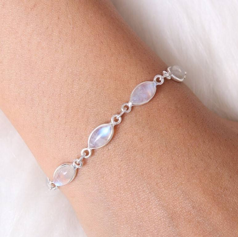 Product Name:Natural Rainbow Moonstone Gemstone silver bracelet