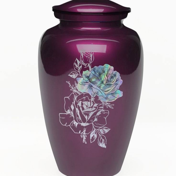 Blue Floral Engraved Aluminium Cremation Urn - Adult Human Ashes Funeral Memorial Urn 10 Inch