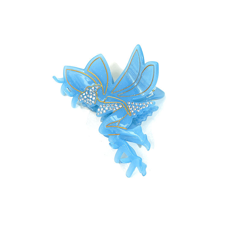 Pince à cheveux unisexe personnalisée de créateur, motif Fée Fleur Bleue, en acétate ajouré avec diamants incrustés, tendance, vente en gros